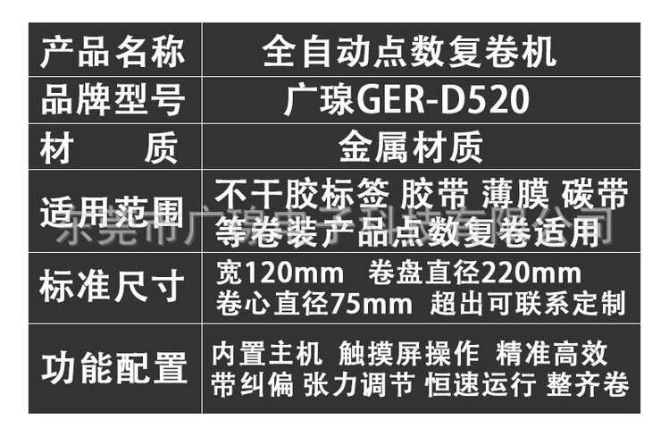 不干膠標簽、膠帶 薄膜 碳帶等卷裝產(chǎn)品點(diǎn)數復卷適用 。